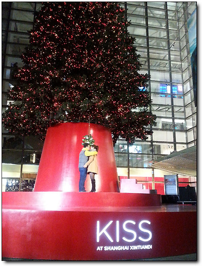 상해에 있는 유럽풍 거리로 유명한 신천지는 화려한 조명들로 휘황찬란하다.