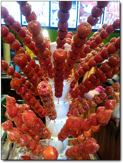 사과 겉면에 달달한 시럽 같은 것이 발라진 상태에서 그 시럽이 굳은 터라