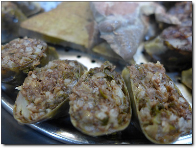 간을 중심으로 세가지 종류의 순대가 빙 둘러져 있는데...
