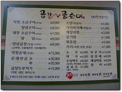 식당 이름에서 보듯, 이 집의 주 메뉴는 곱창과 순대이다.