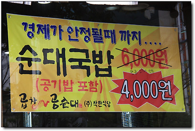 경제가 안정될 때까지 2000원 할인해준다는 4000원짜리 순대국밥 맛을 못 봤기 때문.