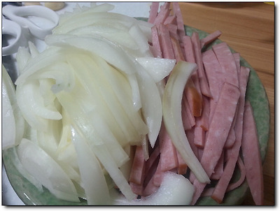 양파도 채 썰고, 햄도 채 썰고,
