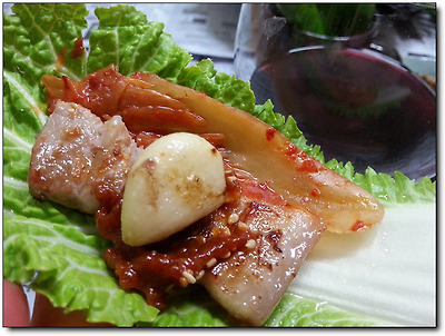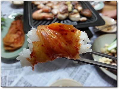 김치 한조각 곁들여 먹으니