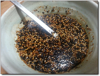 그렇게 해서 간장으로 만든 양념장에 깨소금이 투하됐다.