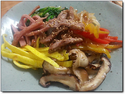 전체 재료를 한번에 볶아 만든 잡채보다는