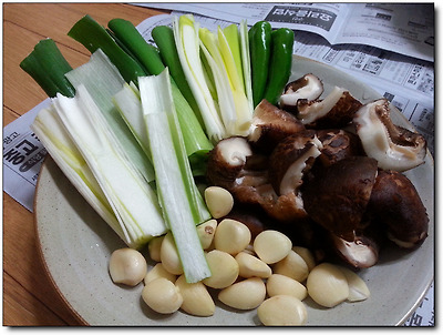 고기와 함께 굽게 될 파, 마늘, 버섯까지 준비 완료.