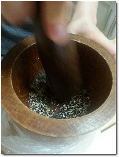 그리고는 통깨를 직접 빻아 깨소금을 만드는데,