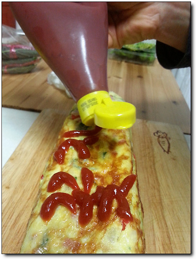 케첩으로 글자를 쓰는게 절대 쉽지 않음에도,