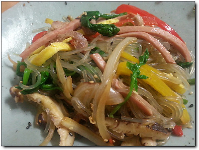 비빔잡채를 먹고,