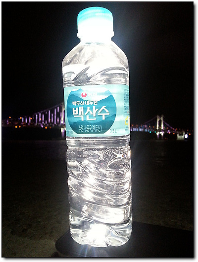 투명 물병을 올려놓으면 마치 형광등을 켜놓은 듯