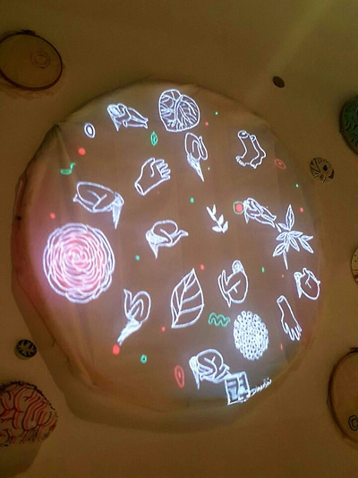 맞은 편 벽에 또다른 영상이 플레이되고 있어