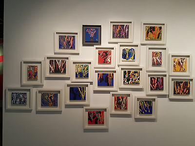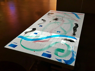 흰 판넬 위에 색색의 페인트로 그림을 그려 놓으면