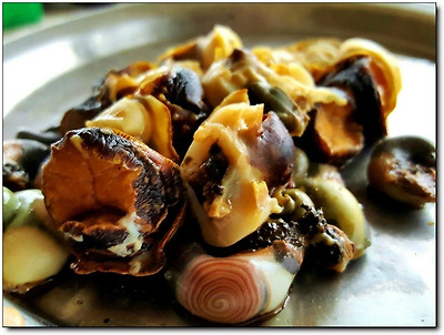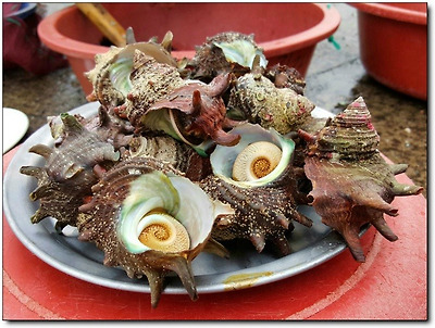 갓 쪄서나온 뜨거운 소라를