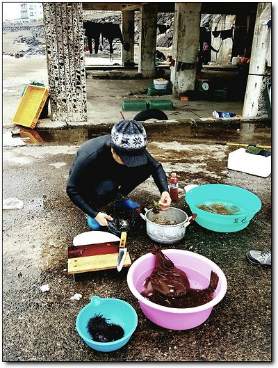 해녀 할머니는 손 후후 불어가며 직접 살을 꺼내 손질해주시는데...