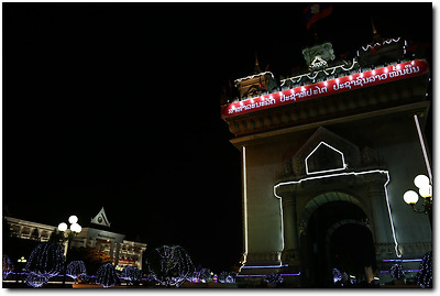 라오스 사람들은 그 시멘트로 활주로 대신 이 파뚜사이 (개선문)을 만든 것.