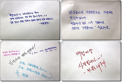 한줄 남기기 낙서장에도 백탑마당에 대한 축사가 이어지는 가운데,