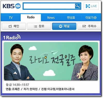 KBS라디어 어플 KONG을 깔아서 들을 수 있는데,