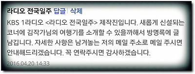KBS 라디오 PD가 제 블로그에 찾아와 글을 남겼더라구요.