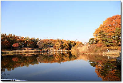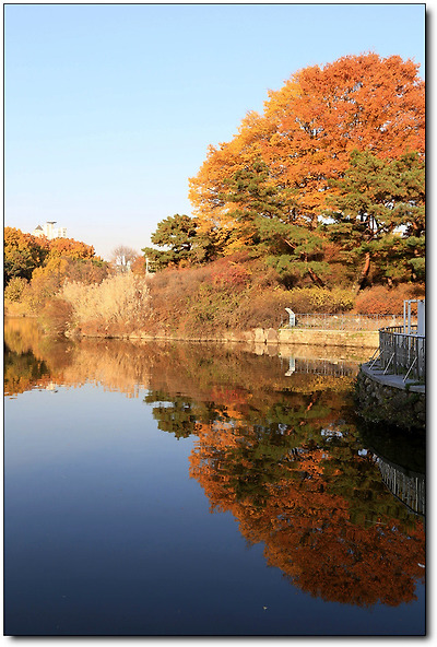 잔잔한 호수 위로 비친 가을 풍경을 보고 있노라면