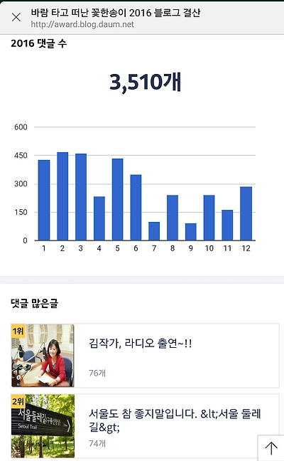제 블로그가 댓글 수 상위 1%의 넘사벽 신 블로그라니~