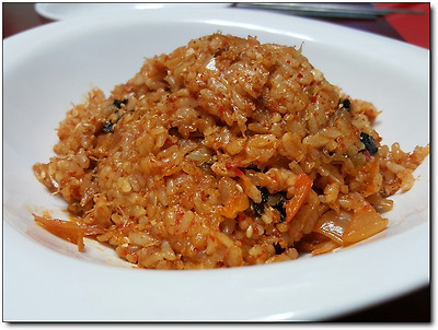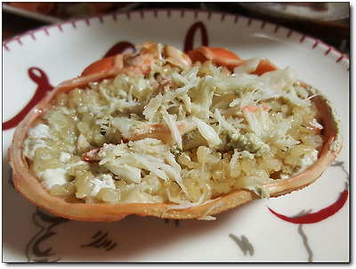 몸통에 있던 대게살은 밥과 김치와 만났다.