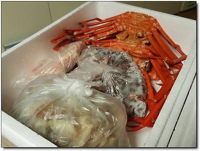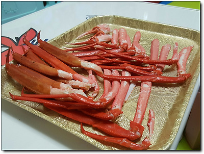 집에 와서 열어보니 대게와 대게살 발라놓은 것,