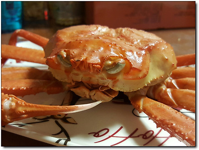 찜통에서 나온 대게와 눈 한번 맞추고,