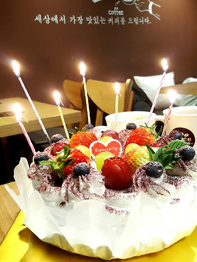 예쁜 케이크에 촛불도 꽂아주고