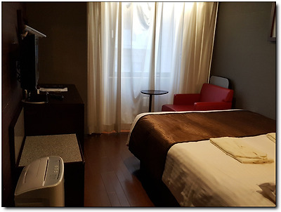 일본 호텔이 대부분 다 그렇듯이 방은 아주 좁다.