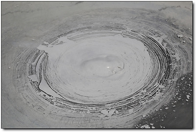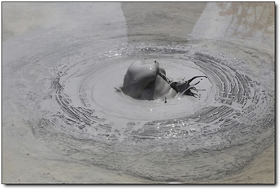 잿빛의 진흙이 동심원을 그리며 보글보글 끓고 있는데...