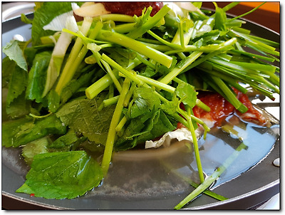 주재료들이 육수를 흠뻑 안고 우리 앞에 놓였는데.