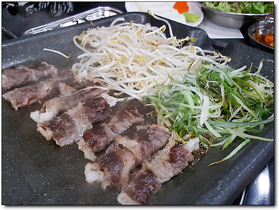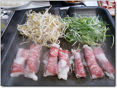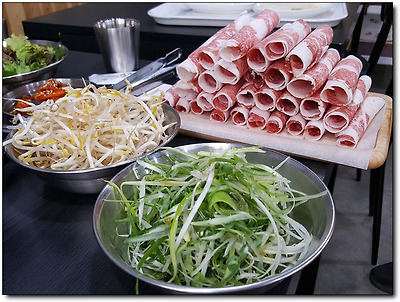 차돌박이를 주문했더니 숙주나물과 파채가 듬뿍 함께 나온다.