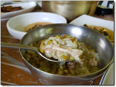 고기를 다 먹고 나니 녹두죽이 나옵니다.