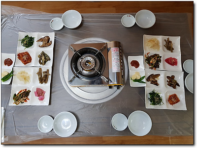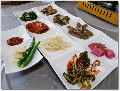 예전에 왔을 때는 반찬그릇들이 많았는데,