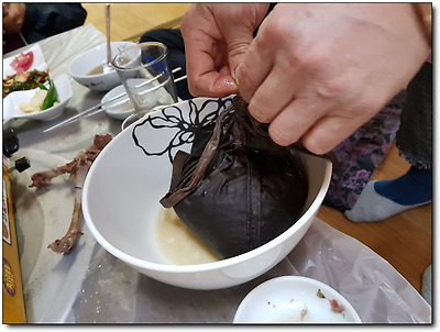 보에 따로 싸서 끓여 따로 내어주신다.