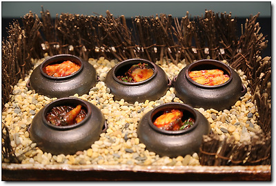 한국의 맛을 대표하는 음식들이 전시되어 있는 가운데,