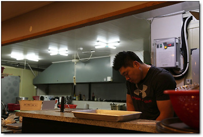 사장님인 듯 보이시는 분이 오픈된 주방에서 고기 손질에 들어가신 것 같고,