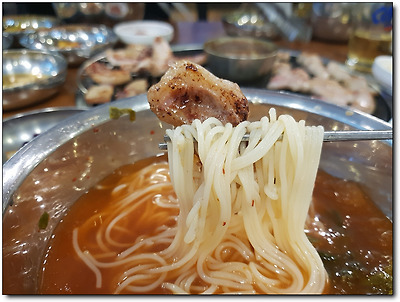 그런데 이 제주흑돼지맛집의 화룡점정은 이 열무국수였으니