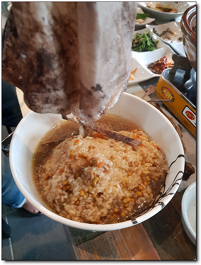 이곳 구례맛집의 죽은 백숙에 풀어서 끓이는 게 아니라
