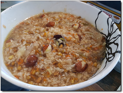 이 야채죽은 녹두를 듬뿍 넣어 고소한데다 제대로 영양죽의 맛이 느껴진다.