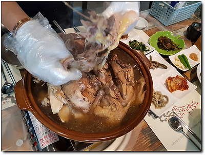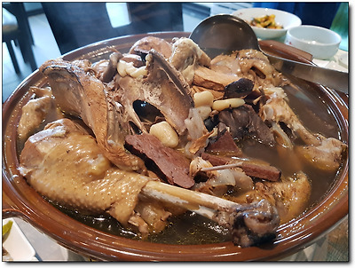 미리 예약을 해둔 터라 우리가 주문했던 여름보양식 적하수오 백숙은 금방 나왔다.