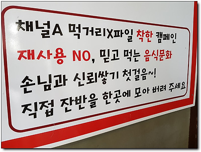 반찬을 재사용하지 않음을 어필하고자하는 사장님의 마음이 담긴 것이라고. ㅎㅎ