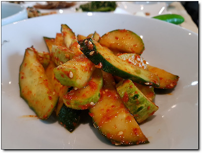 막 버무린 듯한 오이무침도 상큼하고