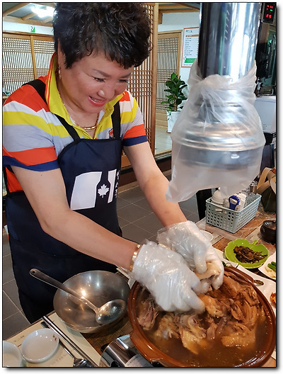 막 끓여내 엄청 뜨거울텐데도 그 뜨거운 백숙을 해체시켜주신다.