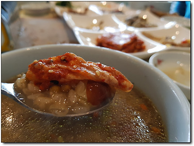 장아찌도 죽과 만나려고 아까부터 그렇게 한자리를 차지하고 있었나보다.