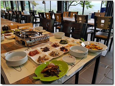 시원한 지리산 바람 맞으며 야외에서 먹고 싶었지만 비온 후라 의자가 좀 젖어 있어 실내로 입장.
