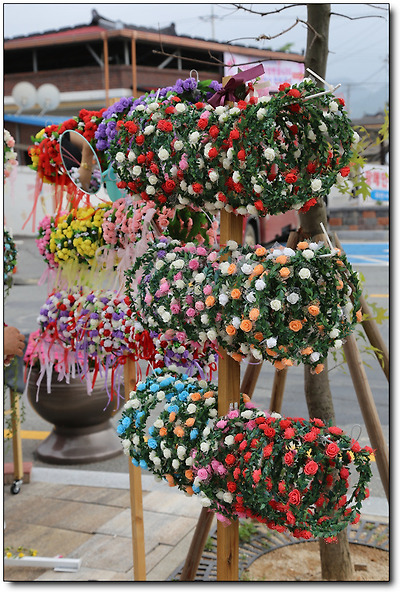 장미축제 들어가는 입구에 예쁜 화관을 팔고 있는데,