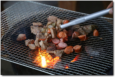 맛잇는 연기가 모락모락 피어오르고 있다.