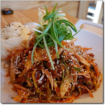 입에 착 감기는 새콤 달콤 매콤한 양념이 예사롭지 않은데,