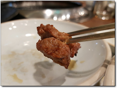 너무 맛있어 보여서 나도 모르게 고기 두 점을 한 젓가락에 덥썩~